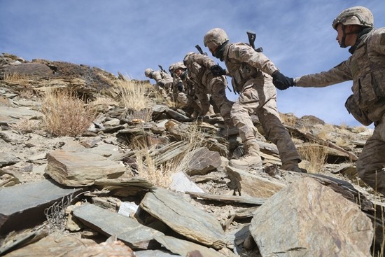 从支普齐哨所向南望去,山体上官兵用石头摆放着6个醒目的大字——“这里就是战场”。