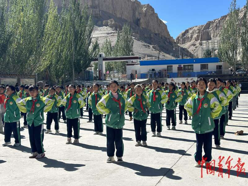 中国青年报客户端讯(中青报·中青网记者 石佳)伴随着欢快的节奏、动感的旋律,身穿绿色校服的西藏小学生们动作舒展地跳着“宣舞体操”,青春气息扑面而来。9月10日上午,在西藏阿里地区札达县九年一贯制学校,一场别开生面的课间操正在进行。“我花了3天时间学会了,我很喜欢这套像跳舞一样的体操!”课间操结束后,该校五年级学生曲增旺姆告诉记者。