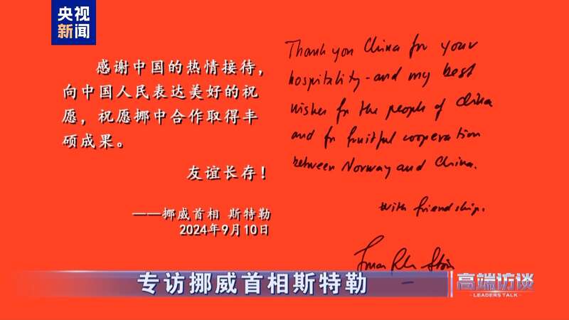 邹韵:您刚刚提到,昨天(9月9日)您与习近平主席会面,共同探讨一些重要议题,例如中挪双边关系,以及如何共同应对一些重大挑战。在您看来,这次会面有哪些方面让您印象深刻?