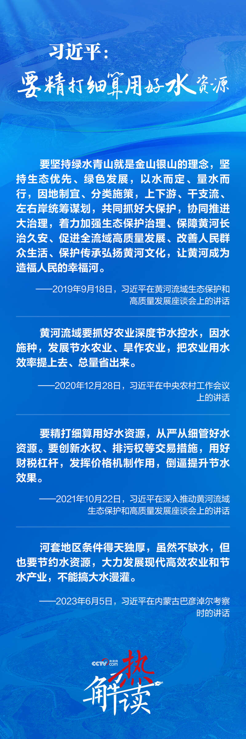 在本次座谈会上,总书记就黄河水使用问题明确要求“严守水资源开发利用上限,细化以水定城、以水定地、以水定人、以水定产举措”,“稳步优化调整‘八七’分水方案”。