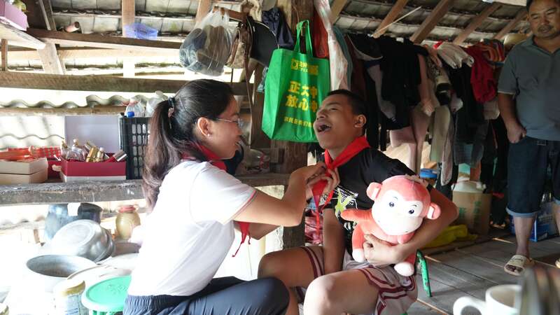 行动困难、无自理能力......14岁的康康(化名)是第一批送教上门的学生。“康康患有先天性脑瘫,2016年,送教团队第一次见到康康时,6岁的他还不会直立行走,只能双膝跪地在地上爬行,手指膝盖布满厚厚老茧。”景洪市特殊教育学校校长阿云清介绍,通过多年的康复训练,现在的他已经可以自己吃饭、洗澡、走路了。送教上门是针对中重度残疾儿童进行的上门教育的教学方式,是学校与中重度残疾儿童的一道桥梁,为了帮助那些行动不便、缺乏自理能力而无法实现正常在校教育的重度或中度的残疾学生,由教师定期到访残疾儿童家中进行授课、辅导训练,并开展家长培训。
