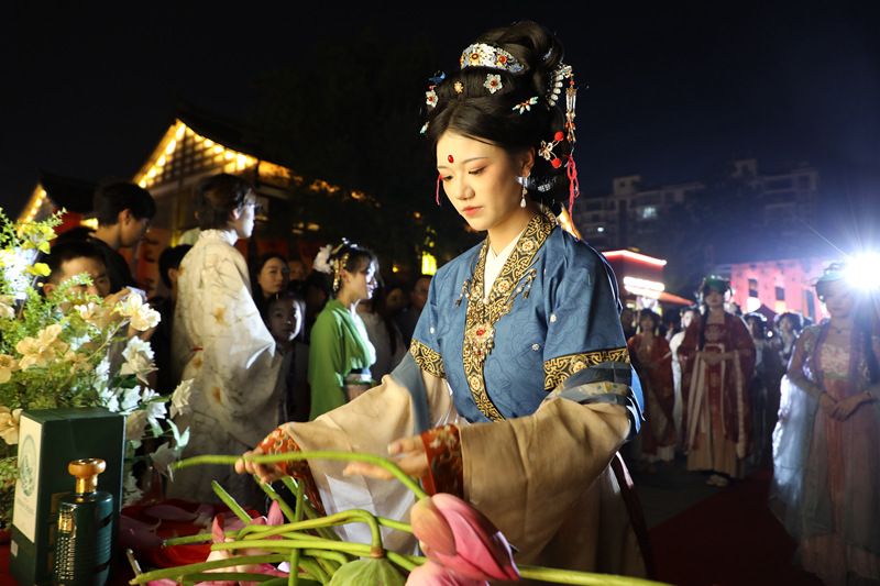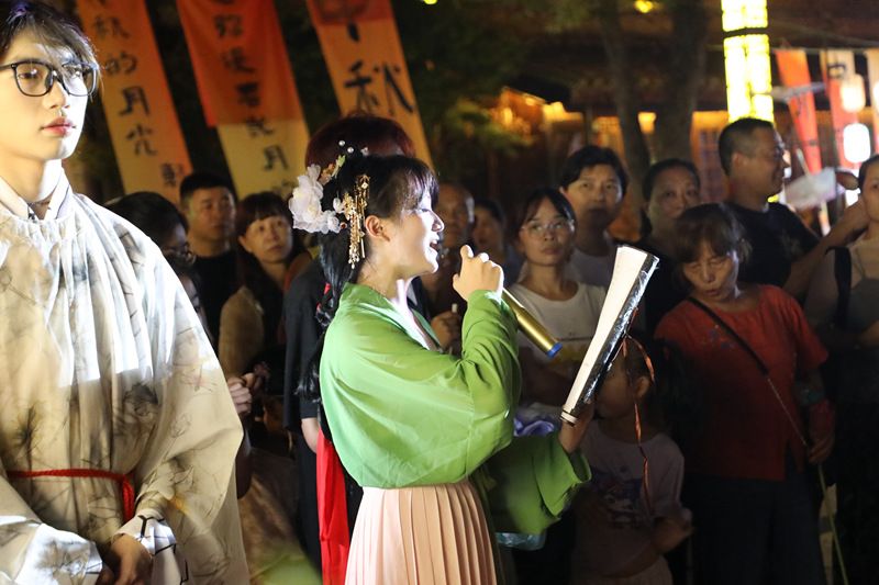 2024年9月16日晚,湖南常德河街春秋广场举行中秋节传统拜月仪式,市民及游客共同参与,祈愿团圆、丰收与平安。
