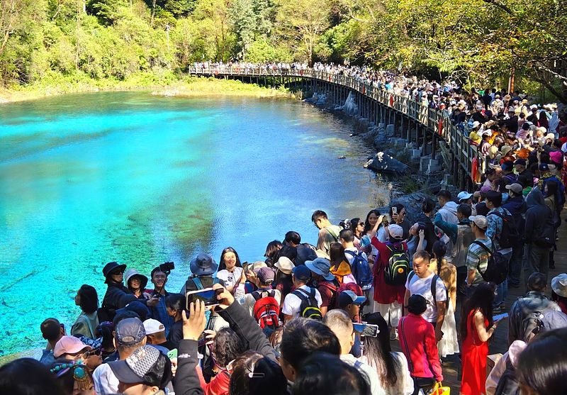 2024年9月17日,四川省阿坝藏族羌族自治州,大批游客热游秋日九寨沟。