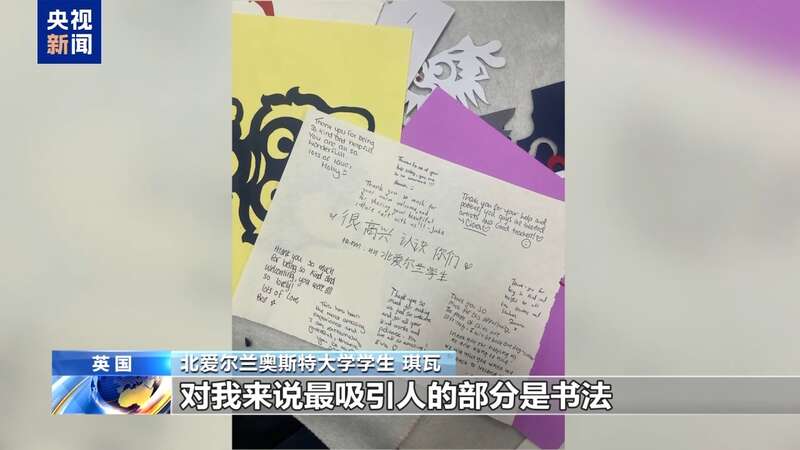 北爱尔兰奥斯特大学学生琪瓦:对我来说最吸引人的部分是书法,尤其是那些文字。我真的非常喜欢这些文字,我觉得这非常有趣,看到它们被转化为一种艺术形式,这真的非常美。我希望每个人都能对此有更多的兴趣,而不是因为它的难度而被吓退。
