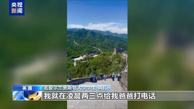 北爱尔兰奥斯特大学学生琪瓦:去长城其实是我一直非常想做的事情,因为我的父母从未去过中国,这也是他们想做的事情之一,他们也想看到长城。我记得在中国的下午,大概是英国时间凌晨两三点,我就在凌晨两三点给我爸爸打电话,因为我想让他看到长城。