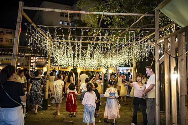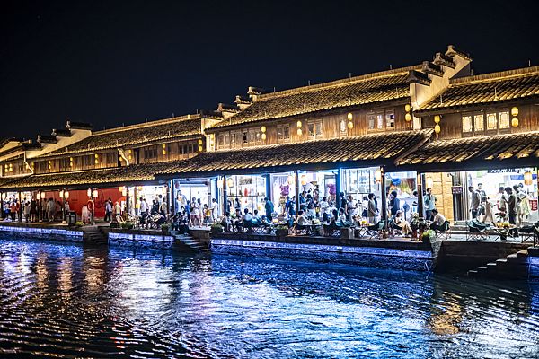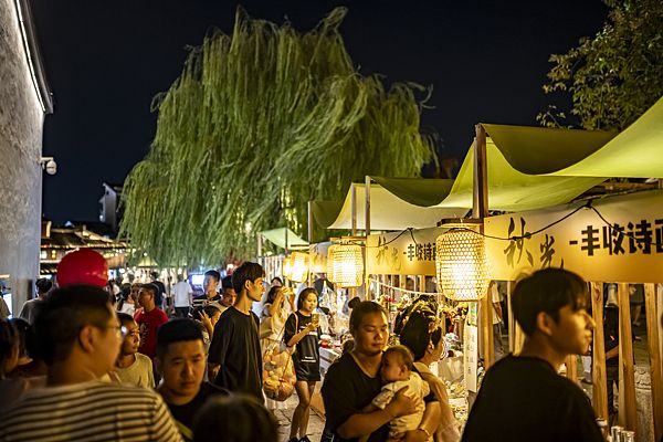 2024年9月17日,浙江绍兴,中秋佳节的绍兴柯桥古镇吸引游客打卡游览赏月,感受非遗,逛市集,打卡网红点。
