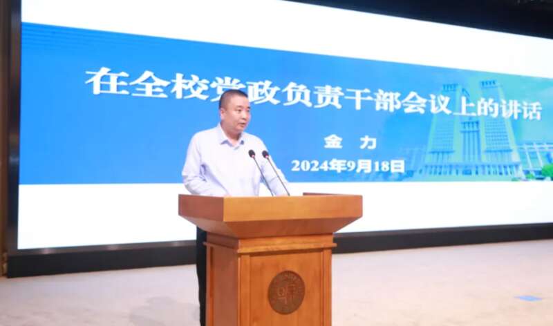 校长金力结合会议内容布置新学年学校教育、科技、人才一体改革的重点任务。