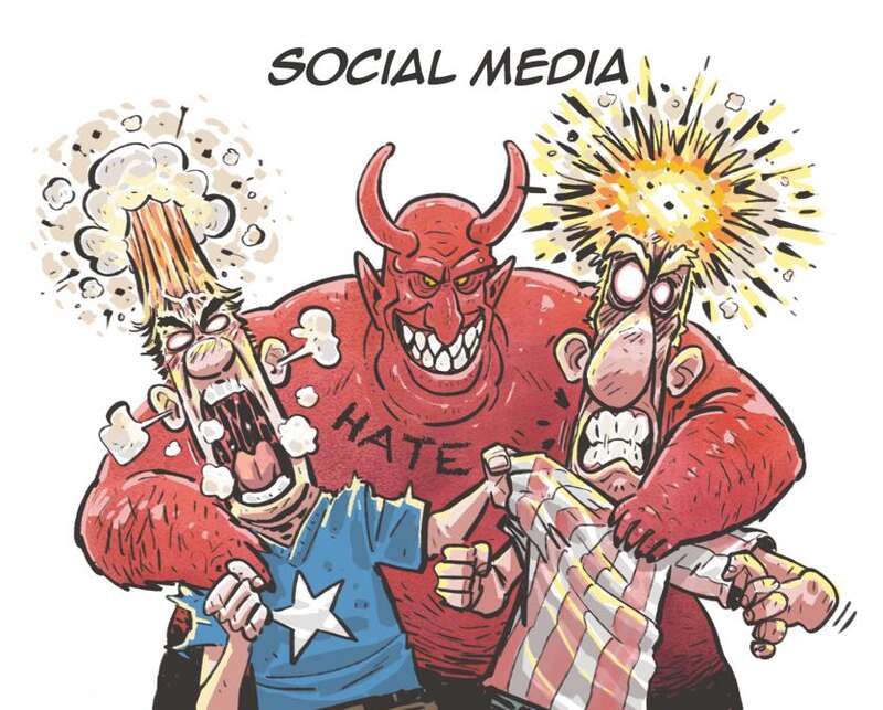 美国社交媒体上弥漫的仇恨加剧了美国分裂与极端化。(来源:中国日报 蔡艨 英文《中国日报》2024年9月19日9版)