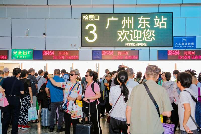 中国青年报客户端广州9月19日电(中青报·中青网记者 林洁)今天,近200名游客乘坐G8464次列车,从广州东站出发,直达广东梅州西站。该团队是“龙龙高铁”梅龙段(以下简称“梅龙高铁”)开通运营后的首个旅行团。由于中秋假期刚过,加上正值工作日,今天出发的游客中,超过9成为50岁以上退休人群。