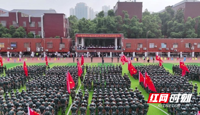 红网时刻新闻9月14日讯(通讯员 吉焕芳 王珺)苍穹敛暑韵,枝叶传秋音。9月14日上午8:30,长沙医学院在田径场举行2024级本科新生开学典礼暨军训总结表彰大会。校领导何彬生、李世兵、李艳辉、周启良、何坤晖、鲍美华、李建明、马贤兴、佘雪平、何平波,各处(室)和学院负责人、2024级本科新生班级全体辅导员及2024级本科全体新生参加开学典礼。党委书记李世兵主持开学典礼。