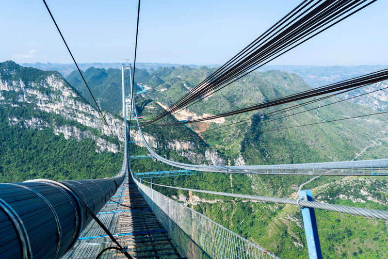 2016年底,杭瑞高速北盘江大桥建成通车。天堑变通途,其桥面至江面565.4米的垂直高度也将世界第一高桥的纪录镌刻在贵州大地之上。