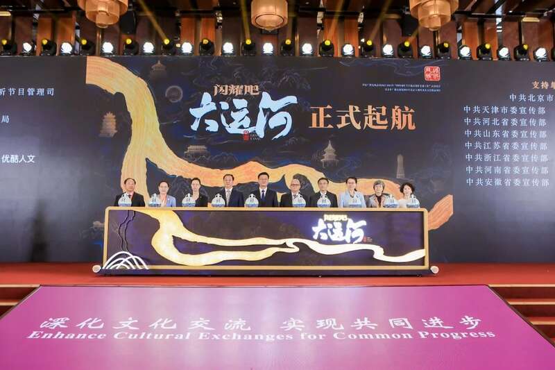 本次启动仪式作为“文化传播:影视制作与时代表达论坛”成果发布环节,发布了《闪耀吧!大运河》节目先导片,大运河图景似一幅动态鲜活的画卷,在众人面前徐徐展开。在启动环节上,大屏幕还呈现了大运河版青花瓷“抱月瓶”的制作过程,以及节目组在北京通州大运河畔采集运河水的画面。随着与会嘉宾将“抱月瓶”中的水缓缓倒入启动台,中国大运河全线被点亮,节目正式起航。