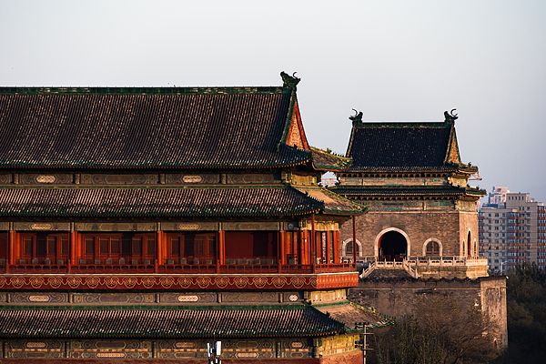 暮鼓晨钟。作为中轴线北端的地标建筑,位于北京地安门外大街的钟鼓楼与天安门、端门、故宫构成的朝堂区域共同组成《考工记》所载“面朝后市”的都城规划范式。如今,在现代科技加持下,古老的钟鼓楼焕发新的光彩。