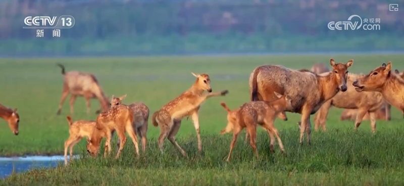 麋鹿和江豚都是国家一级动物,为了对它们进行保护,1991年,专家选定石首天鹅洲湿地建立自然保护区。随着这里的生态环境持续向好,尤其是近几年长江生态的改善,保护区内的麋鹿数量从最开始的64只增长到了现在的3800多只。江豚的数量也从最初的5头繁衍增长至101头。如今,在保护区内麋鹿欢腾,江豚戏水已成为常态。