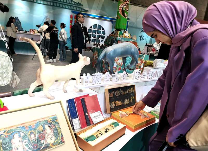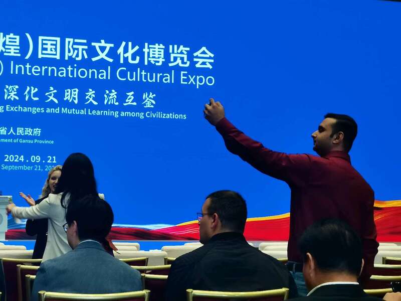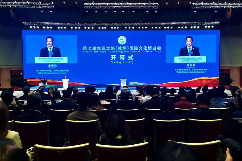 9月21日,以“践行全球文明倡议,深化文明交流互鉴”为主题,第七届丝绸之路(敦煌)国际文化博览会(以下简称“敦煌文博会”)在敦煌国际会展中心盛大开幕。本届文博会包含开幕式、敦煌论坛、文化展览、文艺演出、招商推介等5个方面18项活动。中青报·中青网记者 马富春/摄