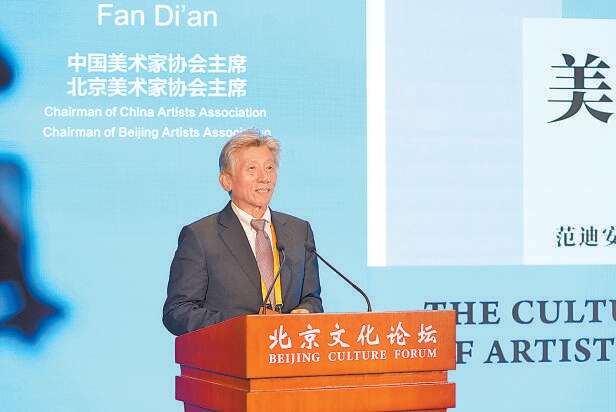 中国美术家协会主席、北京美术家协会主席范迪安表示,中国美术长河奔流,以鲜明而独特的艺术形式,在世界艺术之林自成体系。中国美术是历史的图像印记,是社会发展的百科全书,反映了中华民族的文化理想和精神追求。创新是美术发展的根本动力,并由此产生广泛的文化动能。“今天,美术馆建设方兴未艾,正以大力建设美育家园培植文化情怀。新时代的美术创作集中反映时代生活,大量优秀作品引发文化共鸣,彰显‘大美术’时代的到来,正以设计改变中国。”他还特别提到,2024北京国际设计周呈现诸多创新点:京津冀三地设计周合办、同时启动;启动设计生态链建设,把艺术、科技、产业、设计各界联合起来,形成设计界和产业界联动的有效平台。
