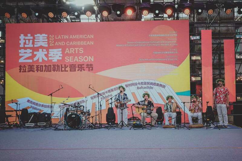 中国青年报客户端讯(中青报·中青网记者 李丹萍)“你好!北京!”舞台上,来自墨西哥皮尔多拉乐队的主唱大声喊出自己的问候。9月21日,2024“拉美艺术季”之“拉美和加勒比音乐节”在北京798·751园区动力广场开幕,来自墨西哥、巴拿马、哥斯达黎加的乐队和来自智利的民族舞蹈团,以拉美风情的音乐和舞蹈,为首都观众献上金秋时节的艺术大餐。