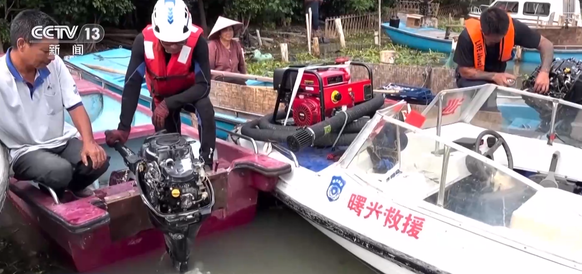 当地政府、渔政、应急等队伍和蟹农一起