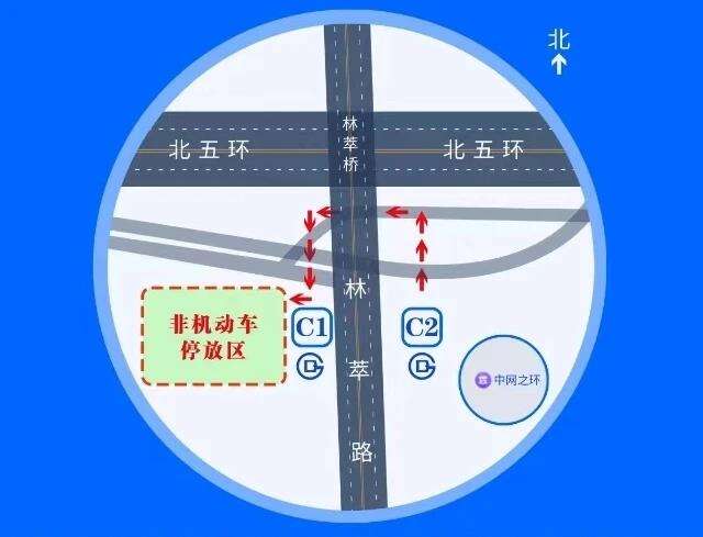 9月23日—10月6日中网赛事期间,国家网球中心西一门(林萃桥地铁站C2口附近)将是人流量最大的出入口,林萃路东侧由速滑馆北路至五环辅路禁止停放非机动车。如有停放需求,请向北绕行至林萃桥地铁站C1口停放区。