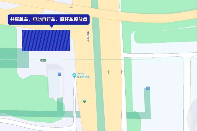 通过共享单车、电动自行车和摩托车来观赛的观众,建议将交通工具停放在地铁8号线林萃桥站C1口北侧存车区。