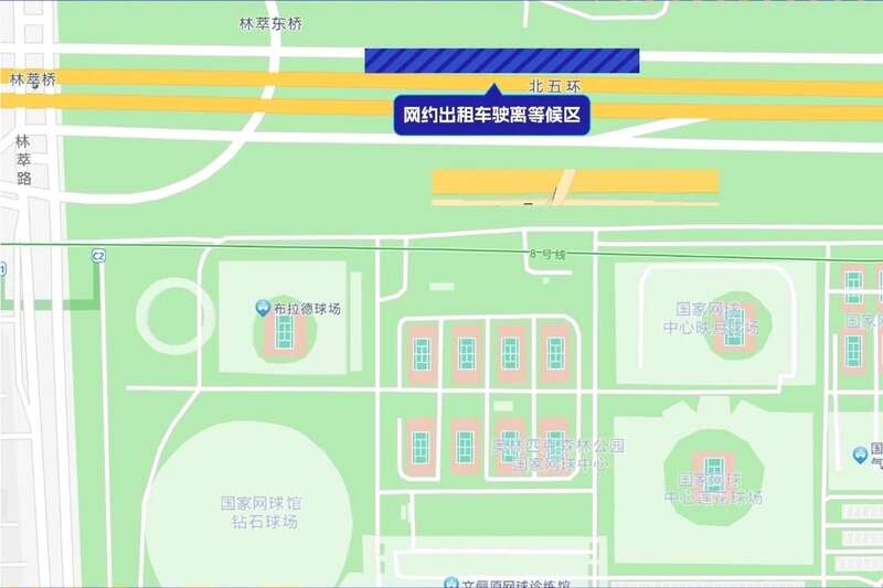 在中网赛事期间,网约车乘车区为林萃桥东五环辅路。