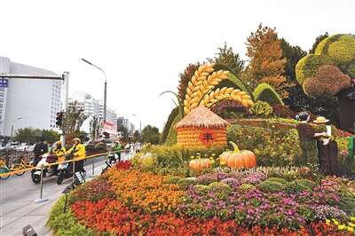 据统计,今年国庆期间全市园林绿化部门布置主题花坛60余组、地栽花卉18万余平方米、花箱2万余个,使用花卉2100余万盆。目前,花卉布置工作已全部完工。据市园林绿化局城镇绿化处处长刘明星介绍,今年市园林绿化局组织了“千家万盆”鲜花祝福祖国活动,从中挑选出75盆市民精心栽培的鲜花,这些来自“老百姓家里的花”将扮靓西单西南角“花园社区”花坛,实现“人人做园丁”。