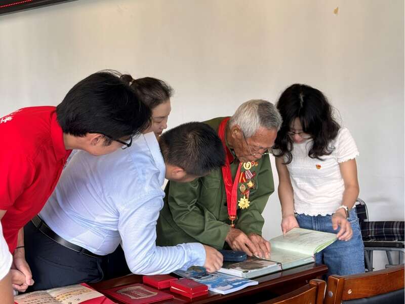 黄灼仁老人和师生交流。活动主办方供图