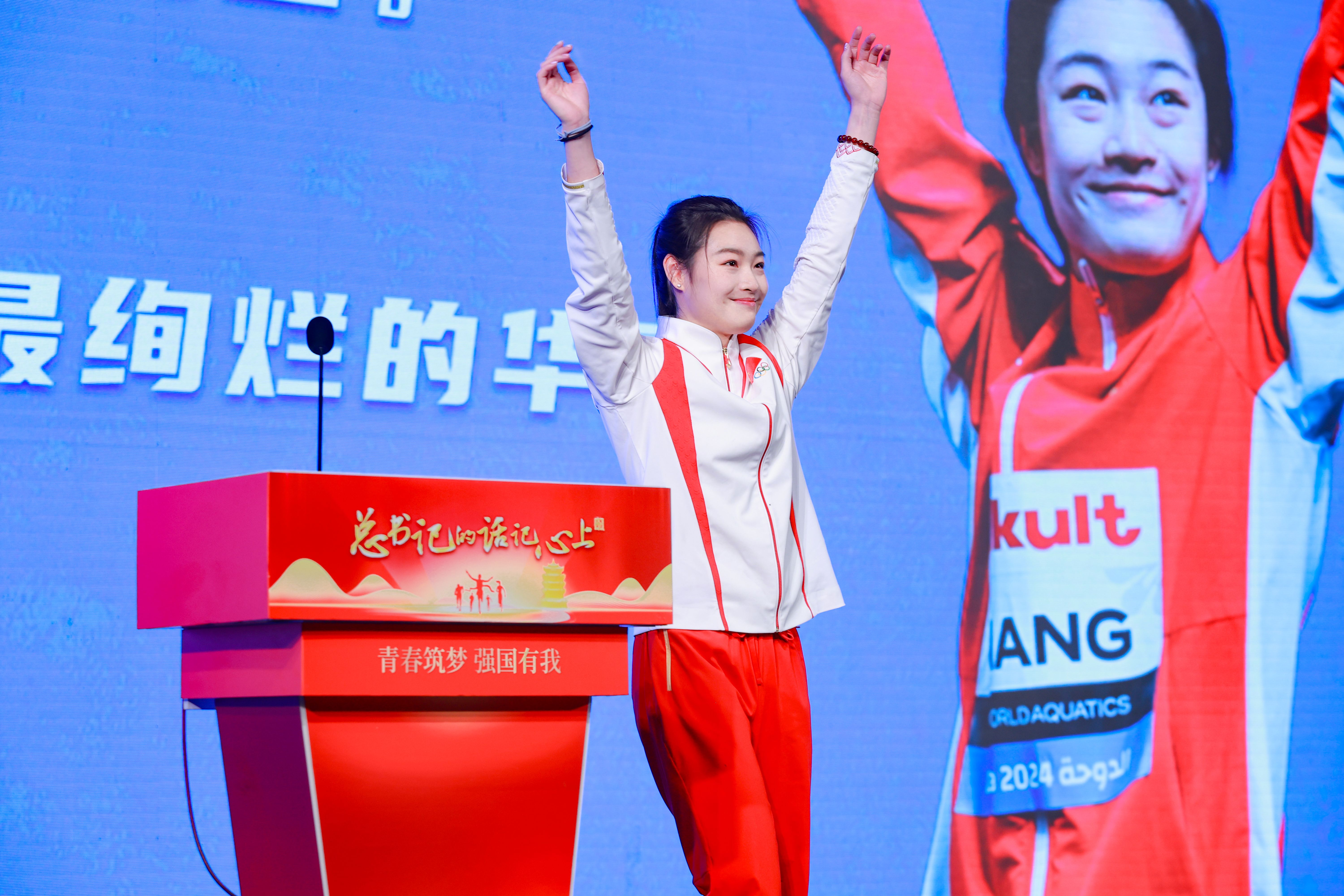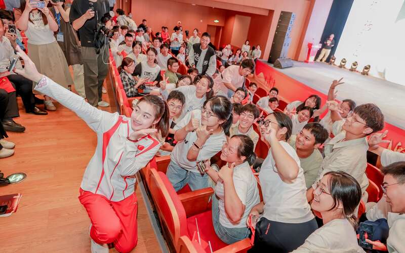 在2024巴黎奥运会上,中国跳水队首次实现包揽8枚金牌的壮举。这其中,昌雅妮与搭档陈艺文一起取得了中国跳水队巴黎奥运会首金——女子跳水双人三米板金牌;此外,她还收获了一枚女子三米板单人铜牌。作为奥运冠军,昌雅妮的每一次出现都备受关注。她甜美的笑容感染着现场的每一个人,同学们纷纷求合影。她的分享更向青年学子传递着积极向上的正能量。