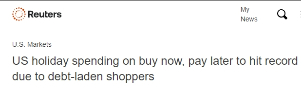 据英国路透社报道,数据分析公司Adobe Analytics 25日发布的预测显示,今年第四季度美国消费者通过第三方“先买后付”服务平台进行假日购物的花费预计将达到创纪录的185亿美元。该公司表示,由于许多美国人最近背负了更多的债务,与去年假期相比,今年假期期间用于“先买后付”服务的支出将增加11.4%。
