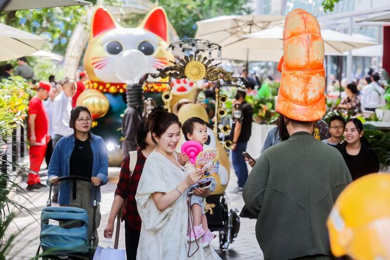 艺术季将在10个演出日内,呈现130余场公共空间展演。曾参加阿那亚戏剧节的艺奇客团队,聚集7辆各具特色的巡游花车——其中3辆是为户外艺术季量身定制。观众将欣赏到赛博朋克风格的“炼丹炉”“艺术细胞”与“天蓬元帅”,并与“五福马”“朋克飞艇”“招财猫”和“鸭梨山大弟”等花车零距离互动。