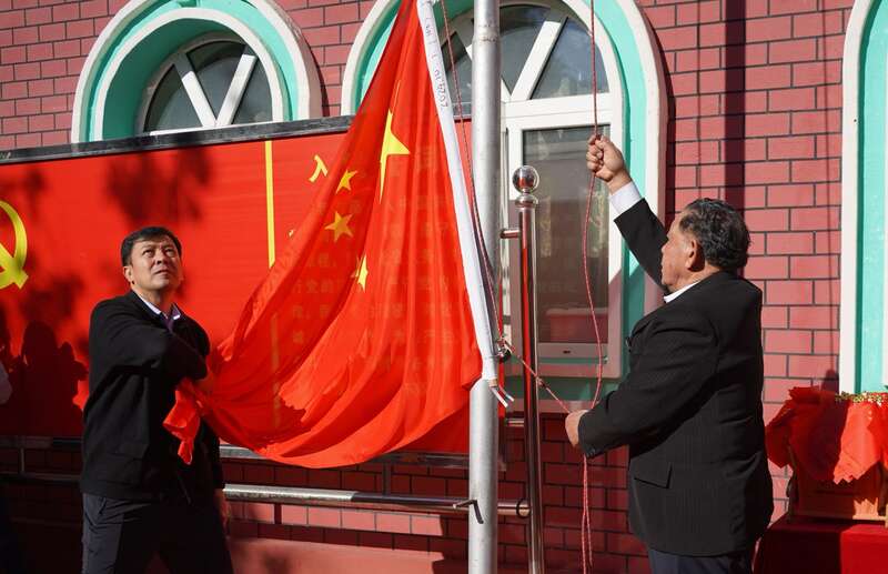 2022年6月22日,在校园里升国旗的沙勒克江大叔如愿成为了一名共产党员。