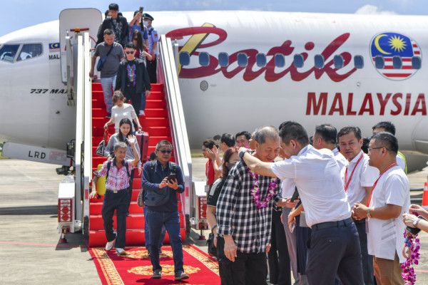 2024年9月28日,海南博鳌,准备乘机前往马来西亚吉隆坡的旅客。当日11时55分,由马来西亚吉隆坡起飞的马印航空OD634航班平稳降落在琼海博鳌国际机场,标志着该机场首条国际客运定期航线开通。据悉,今年3月15日,博鳌机场航空口岸开放正式获批,4月30日,获得中国民用航空局批复更名为“琼海博鳌国际机场”。琼海⇌吉隆坡航线的开通,将为两地经贸往来及人文交流提供极大便利。 中新社记者 骆云飞 摄