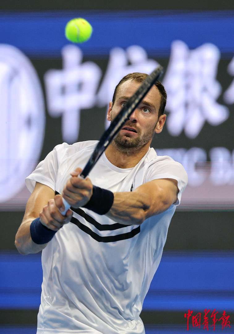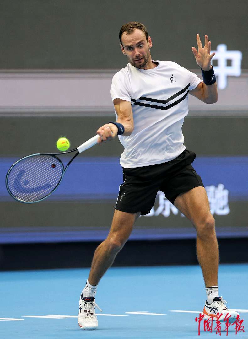 9月28日,北京,国家网球中心,2024中国网球公开赛男子单打第二轮,俄罗斯选手萨菲乌林在比赛中。萨菲乌林现世界排名第69位。中青报•中青网记者 曲俊燕/摄