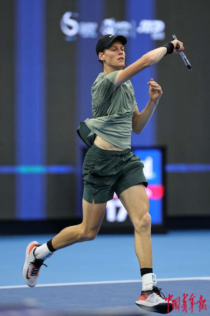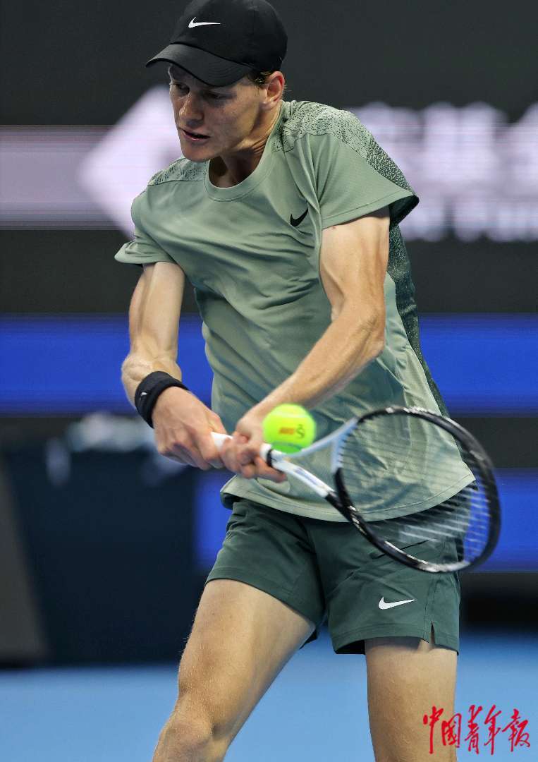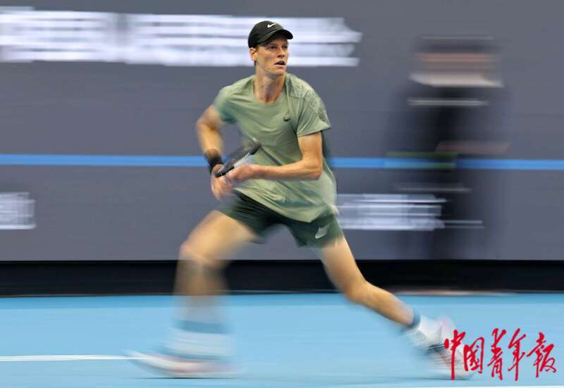 9月28日,北京,国家网球中心,2024中国网球公开赛男子单打第二轮,赛会头号种子辛纳在比赛中。中青报•中青网记者 曲俊燕/摄