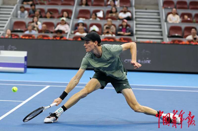 9月28日,北京,国家网球中心,2024中国网球公开赛男子单打第二轮,赛会头号种子辛纳在比赛中救球。中青报•中青网记者 曲俊燕/摄