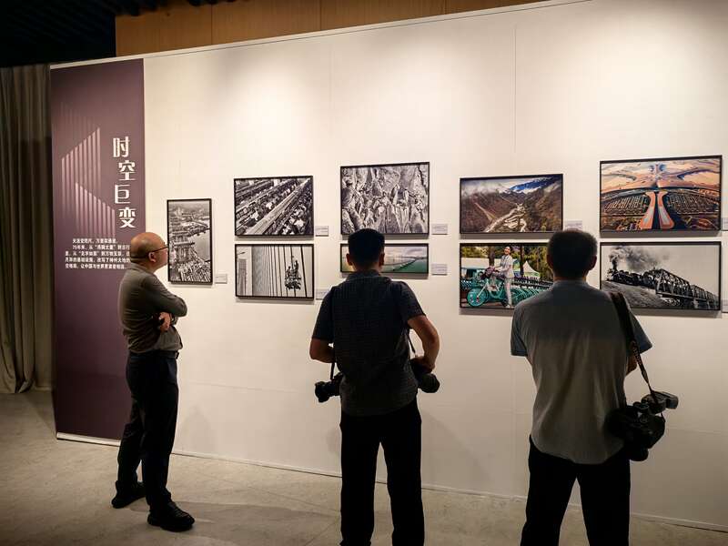 9月29日,“国社之镜·世纪光影”新华社新闻摄影展河南分展在郑州博物馆开展。图为观众在展览现场驻足观展。中青报·中青网记者 潘志贤 摄