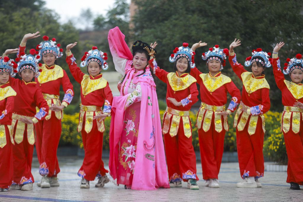 近年来,贵州省黔西市莲城街道天坪小学通过开设戏曲课、建立戏曲兴趣小组和戏曲社团、组织优秀戏曲演出等形式推动传统戏曲走进校园,把被列入省级级非物质文化遗产名录的“文琴戏”设为校本课程,并邀请传承人走进校园教授学生,让学生们从小感受非遗文化,弘扬传统艺术。