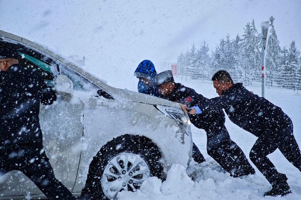 紧急时刻,内蒙古边检总站额尔古纳边检站执勤民警在换勤途中迅速投入到救援行动中。民警们在刺骨的寒风中,对被困车辆进行一一进行解救。在他们的不懈努力下,累计成功救援车辆57台次,让被困的司机和旅客脱离困境。