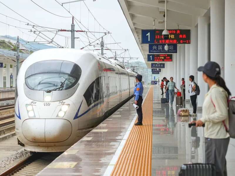 2019年12月,兴国西站投入运营,只办理客运业务。作为京港高速铁路的中间站,兴国西站持续提高服务质量,让旅客回家的“最后一公里”更加顺畅。