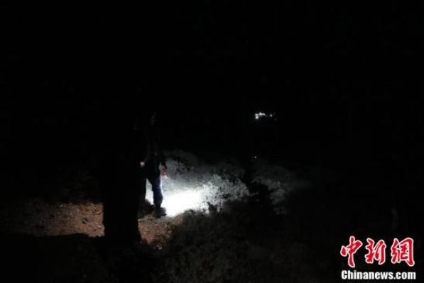 10月2日凌晨,巡逻队在深夜中持手电返回执勤点。