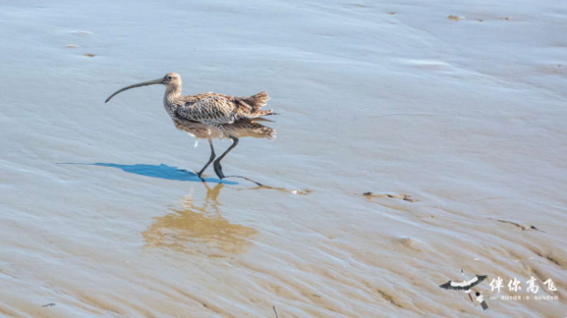 潮间带湿地是海水涨潮到最高位和退潮到最低位期间,暴露在空气中的海岸部分,是湿地的一种类型。附着或者生活在其中的种子、块茎,以及浮游动物、鱼虾螃蟹和贝类,支持着众多鸟类在此停歇、换羽、越冬或繁殖。图为在滩涂觅食的大杓鹬。(徐谭 摄/光明图片)