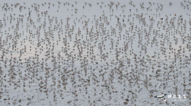 其中,丹东鸭绿江口候鸟栖息地位于东亚-澳大利西亚候鸟迁飞通道北部,提名地内充沛的底栖动物和各种渔业资源,每年为二十万到四十万只候鸟提供了关键的能量补给来源,是重要的候鸟停歇地和补给站之一。图为在滩涂觅食的大批鸻鹬。(徐谭 摄/光明图片)