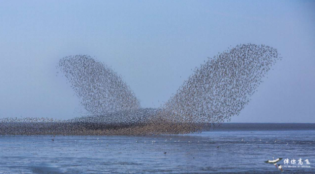 当地时间7月26日,在印度新德里举行的第46届联合国教科文组织世界遗产委员会会议上,中国黄(渤)海候鸟栖息地(第二期)顺利通过评审,上海崇明东滩、山东东营黄河口、河北沧州南大港、辽宁大连蛇岛-老铁山和辽宁丹东鸭绿江口5处提名地以重大边界调整的形式,被扩展列入《世界遗产名录》。图为辽宁丹东鸭绿江口滩涂上翻飞的“鸟浪”奇观。(丹东鸭绿江口湿地国家级自然保护区供图/光明图片)