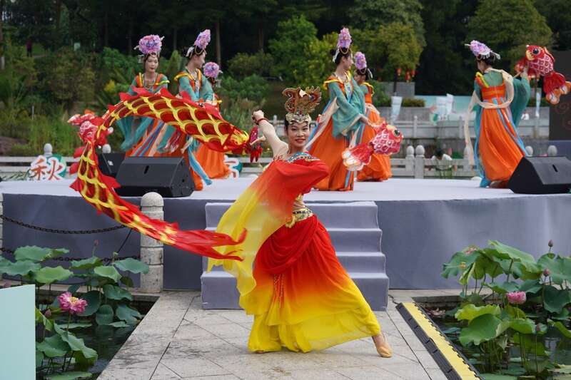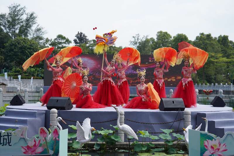 趣味涂鸦、汉服巡游、音乐演出同场助阵,传统集市化身车尾潮墟,吸引了不少游客“趁墟”打卡。文艺展演则在仙境湖舞台上演,以山水实景搭台作幕,主办方编排呈现欢歌曼舞、奇幻魔术、逗趣互动等丰富节目内容,为市民游客带来多场景沉浸式的文旅新体验。