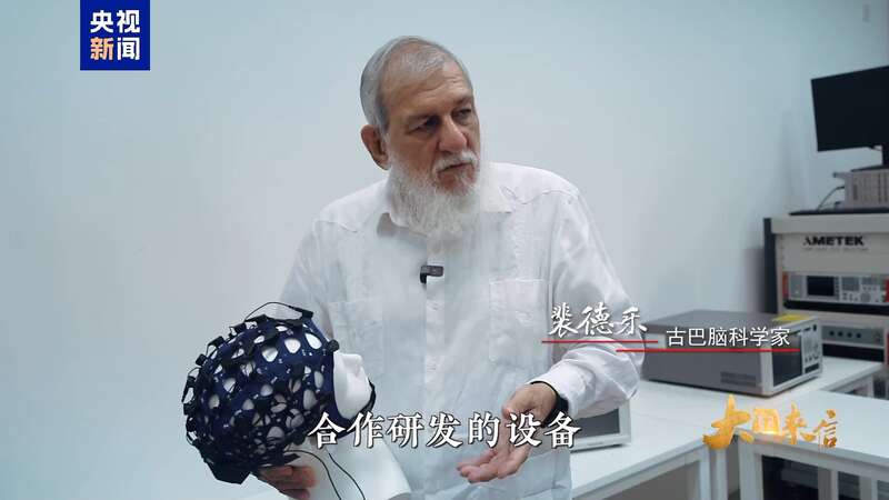 古巴脑科学家 裴德乐:这是中国与古巴两国团队合作研发的设备,这是一个小型的脑电波采集系统。