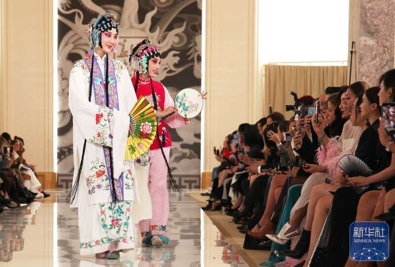 2019年9月30日,在法国巴黎举行的2020春夏系列发布会上,身着中国传统戏曲服装的昆曲表演者走上时尚秀场。新华社记者 唐霁 摄