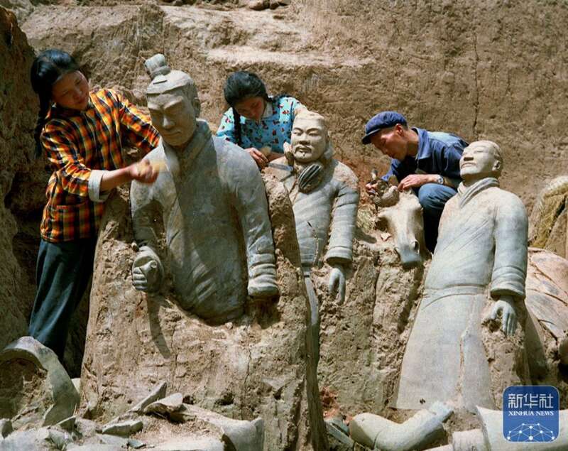 1975年9月,秦始皇陵东侧出土大批陶兵、陶马珍贵文物。新华社记者 安克仁 摄