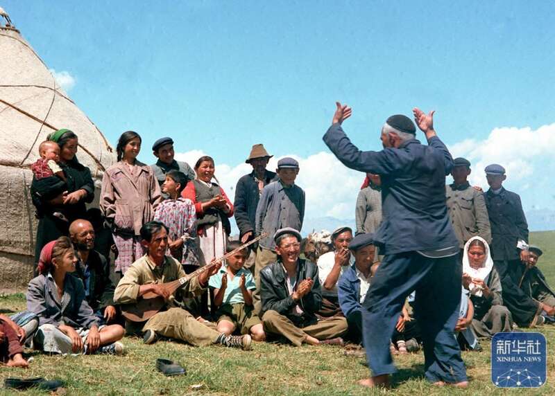 20世纪70年代,内蒙古锡林郭勒盟乌兰牧骑队员在草原上为牧民演出。新华社发