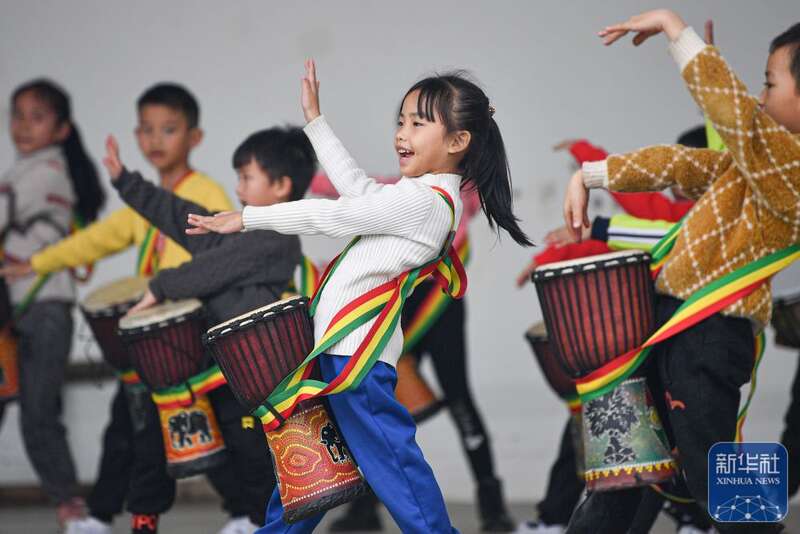 2022年1月19日,小朋友们在海南儋州和庆镇六罗乡村大舞台排练乡村春晚节目。新华社记者 蒲晓旭 摄