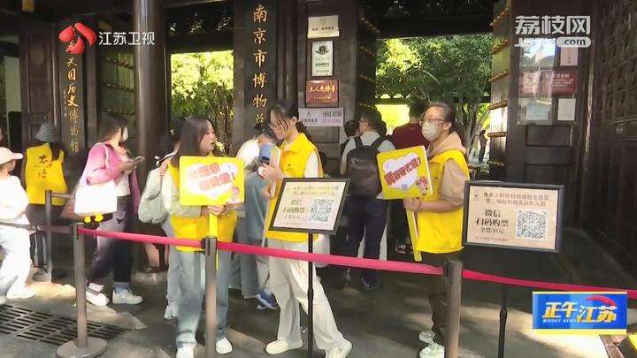 在太平天国历史博物馆,还有红领巾志愿者带领游客们“对话自然”,大学生志愿者则驻守10处志愿服务点,为游客提供便民服务。